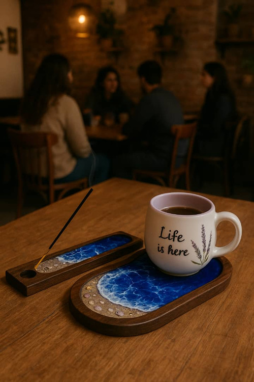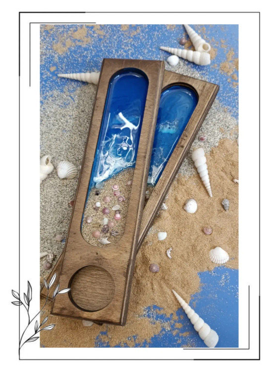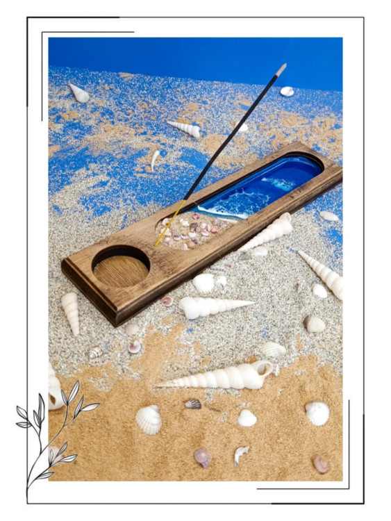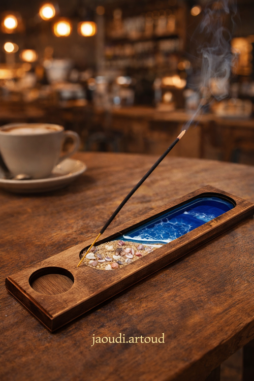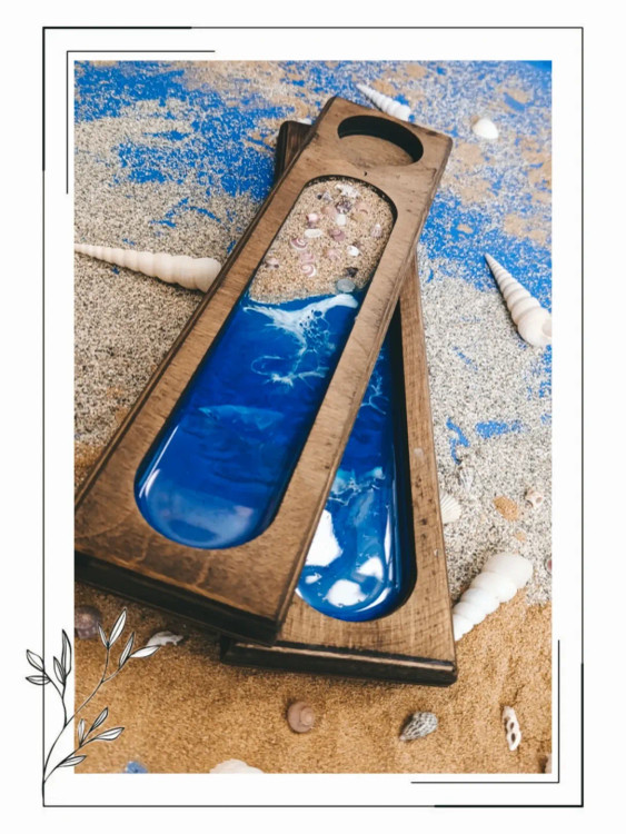 ترکیب چوب طبیعی و رزین آبی، مثل تکهای از آرامش دریا روی میزت مناسب عود شاخهای انتخابی خاص برای دکور، مدیتیشن و هدیه.