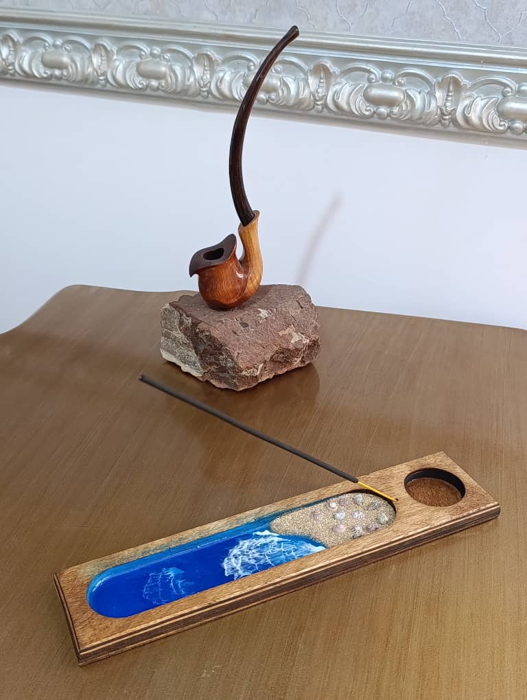 ترکیب چوب طبیعی و رزین آبی، مثل تکهای از آرامش دریا روی میزت مناسب عود شاخهای انتخابی خاص برای دکور، مدیتیشن و هدیه.