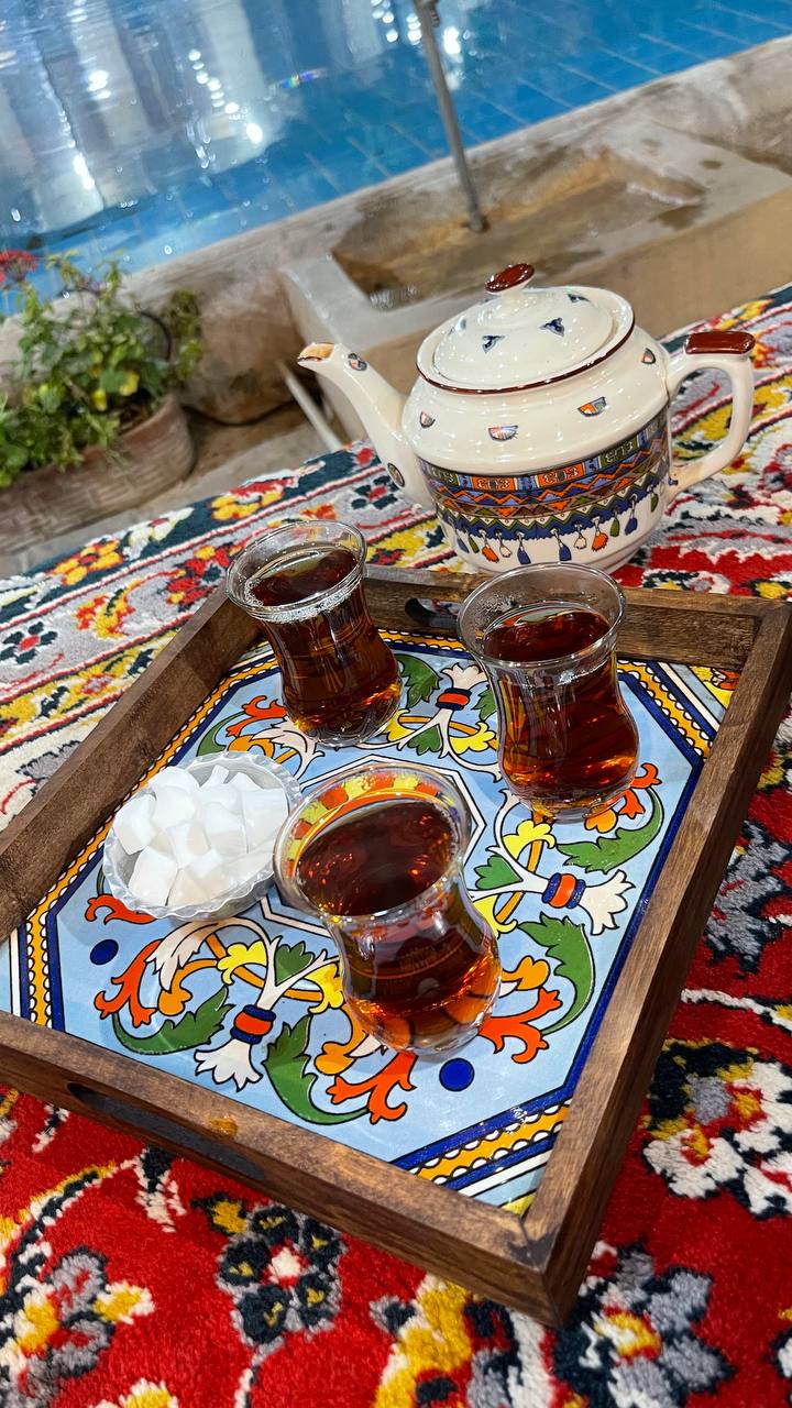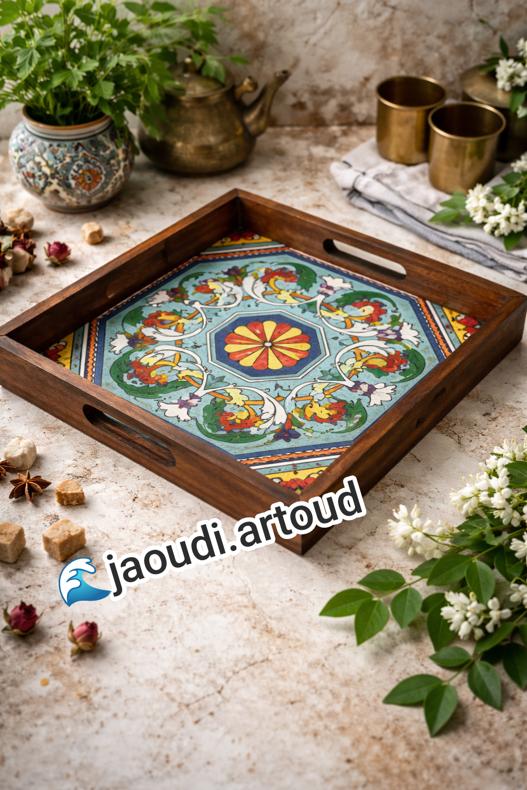 سینی چوبی دست‌ساز با کاشی سنتی